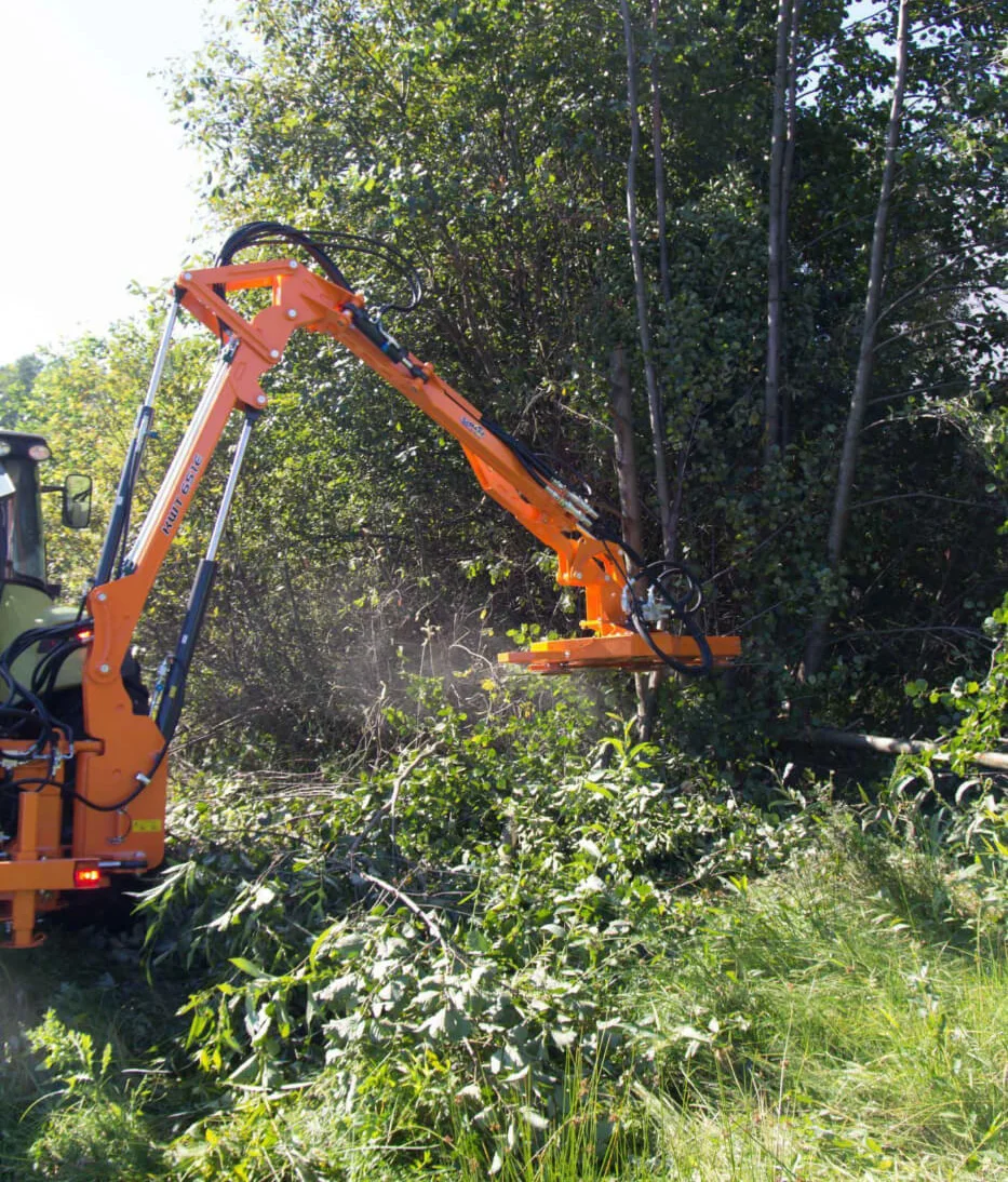 PT 3-190 позволяет быстро и максимально эффективно ликвидировать нежелательные ветви кустарников и деревьев в плоскости режущих дисков, а возможность использовать его совместно с гидравлическим задненавесным плечом KWT 650, открывает дополнительные возможности манипулирования этой пилой в пространстве.